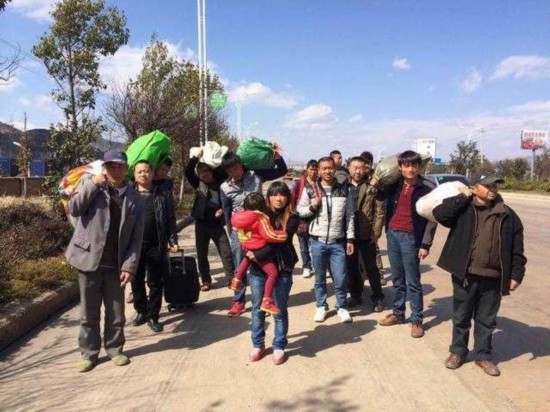 图片说明显示,这十几个人分别来自四川、云南、贵州、河南、陕西和福建等地,都在云南大理务工。讨要了四个月工钱失败后,他们身无分文。临近年关,没钱买车票回家。于是,他们先到车站乞讨,后来在乞讨无果的情况下,做出了一个艰难地决定:从大理徒步走回老家过年。