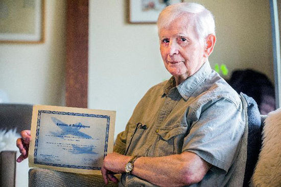 当地时间9日,94岁高龄的老翁安东尼 卜拉托(Anthony Brutto)终于在75年后获得美国西佛吉尼亚大学文学学士学位。
