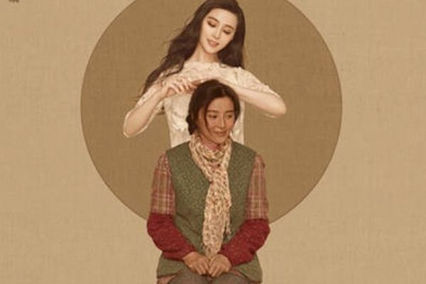 这次曝光的海报中范冰冰再次以“双面”形象出镜。身穿格子衣和绿坎肩、戴着花围巾和红袖套,一身村妇模样的李雪莲端坐中央,脚上的雨靴满是泥土,拘谨的坐姿和轻攥在一起的双手让人能感受到她稍微有些紧张。在她身后,一身素雅白衣的范冰冰正拿着梳子给李雪莲整理头发。范冰冰两个形象的巨大差异让人印象深刻,但是整个画面氛围温暖而和谐,喻示着范冰冰在本人和角色之间找到了平衡。