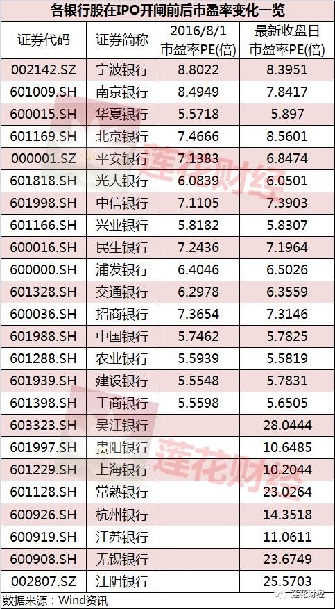 事实上,若把两个时段前后的城商行、农商行单独拿出来比较,可以看出,开闸前就已上市的南京银行和宁波银行的市盈率出现下跌,并且远远低于新上市的8家银行,大型银行则相对稳定。