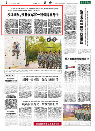 7月30日,我军在内蒙古朱日和联合训练基地举行的沙场阅兵,吸引了全世界的目光。然而,为人所不知的是,在火箭军阅兵方阵的背后,还有一批默默奉献的专家型预备役军官,为受阅部队提供维修和技术保障。他们是驻京火箭军某预备役装备维修大队的官兵。在这次行动中,该大队圆满完成了沙场阅兵装备维修保障任务。请关注今日出版的《中国国防报》报道——