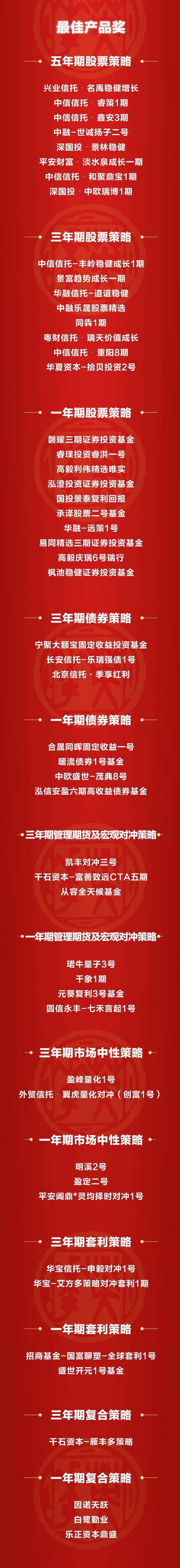 同时,11家私募基金公司获评中国私募基金成长奖,9家私募基金公司获评中国私募基金人气奖。53只六大策略私募基金产品,凭借过去五年、三年、一年的良好表现(截至2017年6月底),获评最佳私募基金产品奖。
