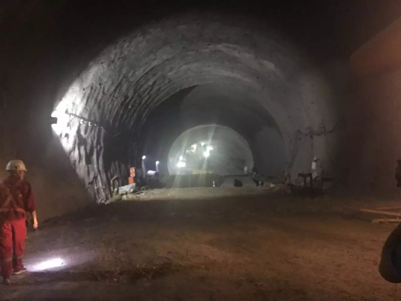 机械设备正在隧道边墙面上钻孔,准备架设预应力锚杆。