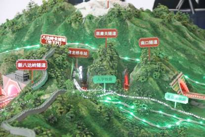 新八达岭隧道工程沙盘图,可以非常清楚地了解京张高铁与老京张铁路、人字形铁路之间的相对位置关系。