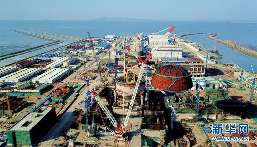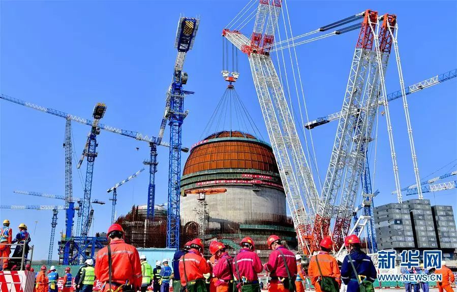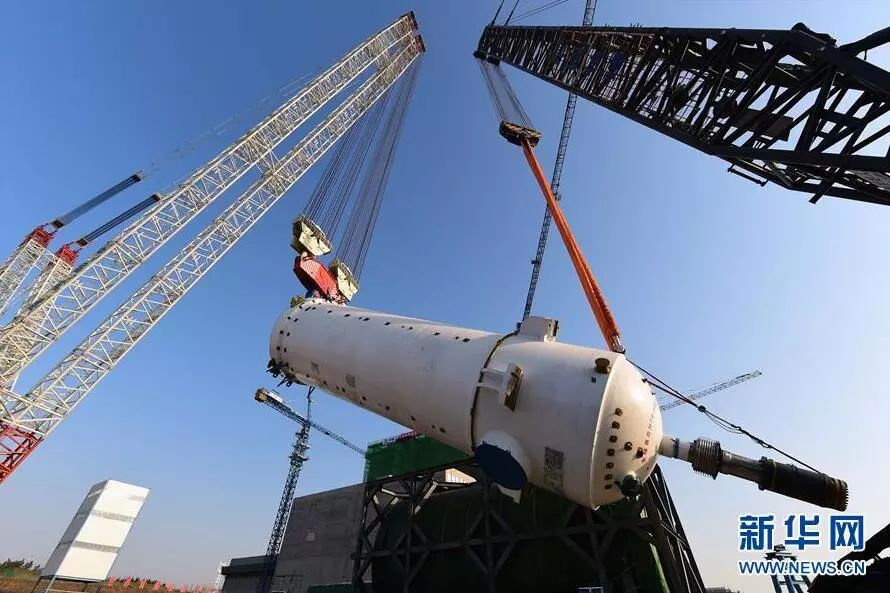 ▲资料图片:2016年3月20日,在华能山东石岛湾核电厂,反应堆压力容器在吊装中。