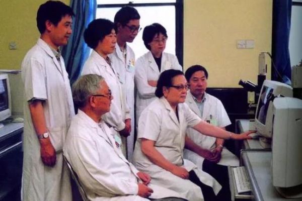 刘彤华2001年,北京协和医院病理科医生读片讨论。右二:刘彤华