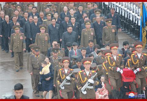 根据报道,出殡仪式在朝鲜四·二五文化会馆吊唁场所举行,国家治丧委员会成员参加出殡仪式。