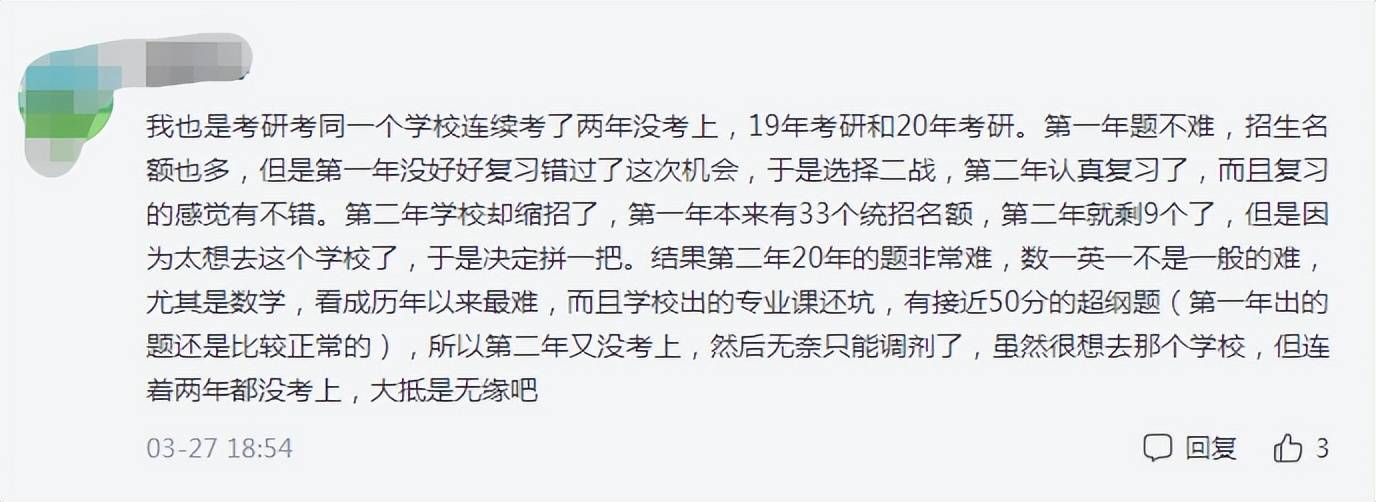 没有人想要虚度光阴,更没有人想要自己几年的努力付之东流,因此学生们都想收到一个好的结果。但现实是,这次考研有457万学生参加,但最终能够上岸的也只有110万左右,必然会有300多万考生名落孙山。