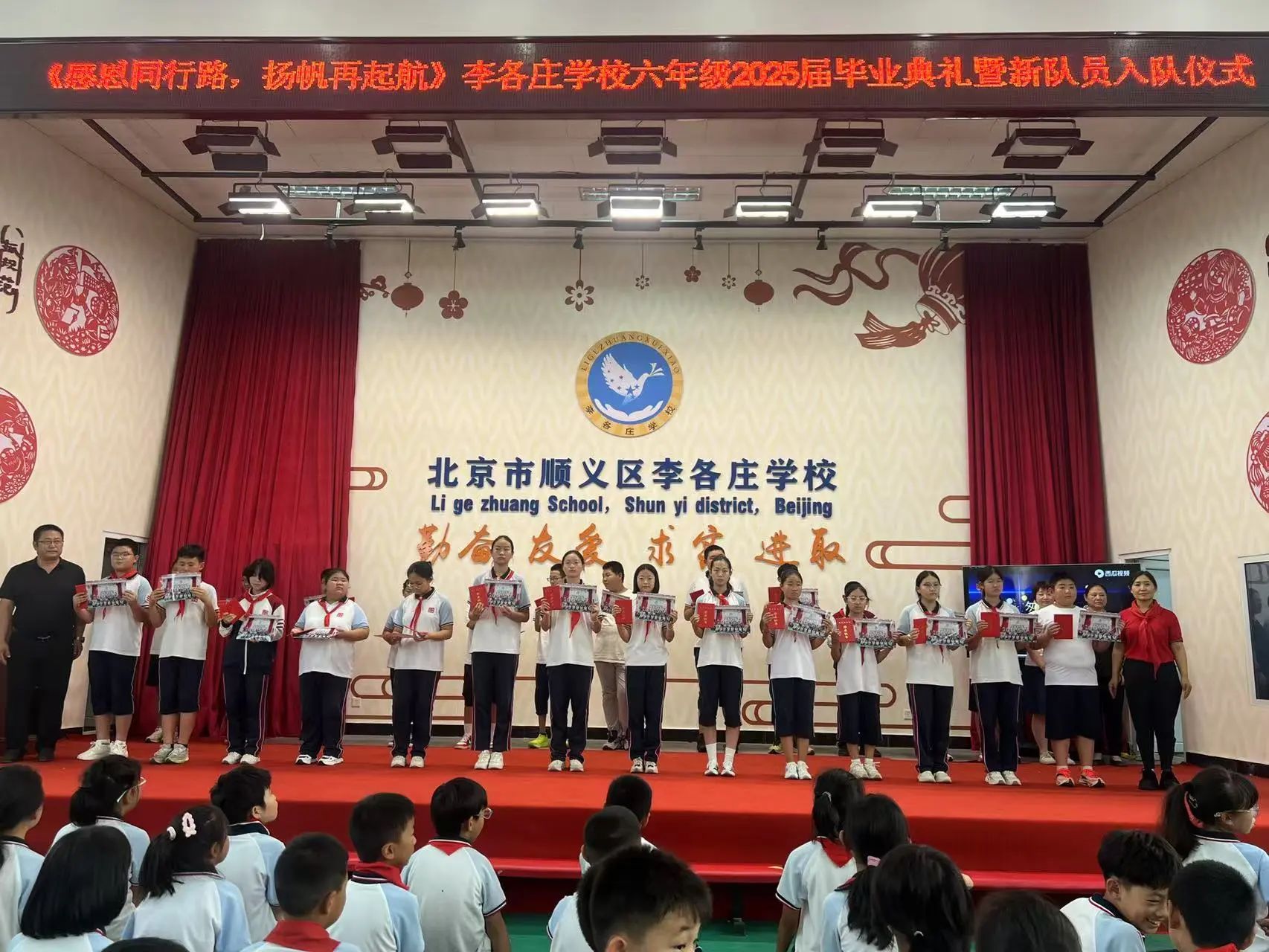 6月26日,光明小学教育集团李各庄学校隆重举行了以“感恩同行路,扬帆再启航”为主题的2025届毕业典礼暨新队员入队仪式。