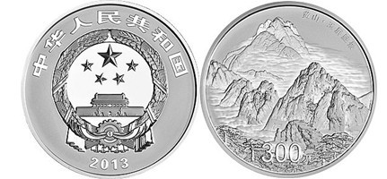 中国人民银行定于2013年8月8日发行世界遗产——黄山金银纪念币一套。该套纪念币共8枚,其中金币3枚,银币5枚,均为中华人民共和国法定货币。